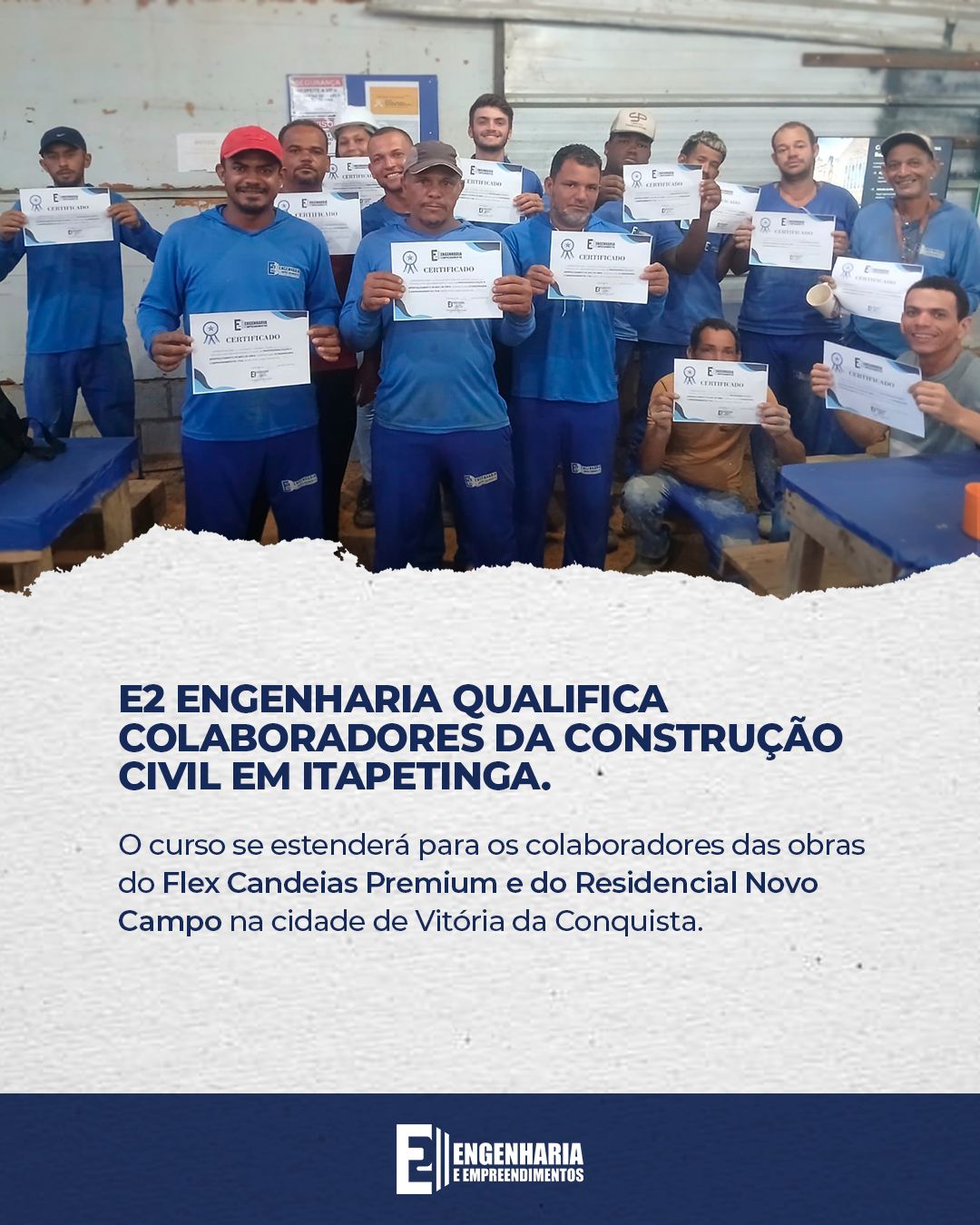 A E2 Engenharia qualifica colaboradores da construção civil em Itapetinga.